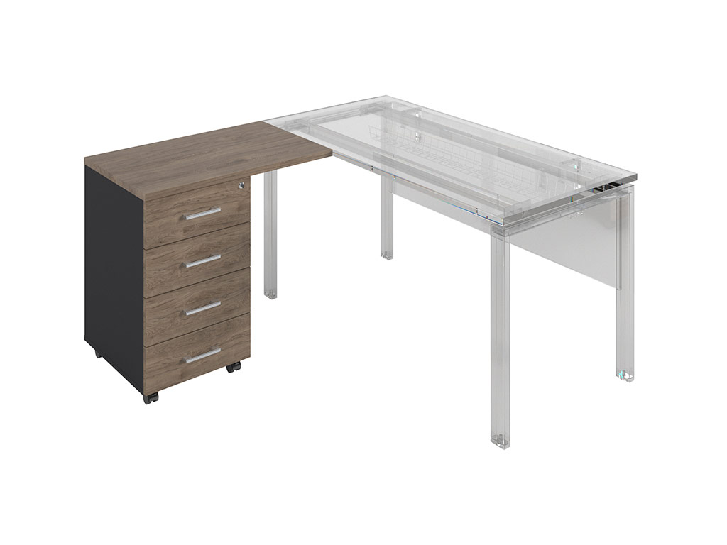 • тумба снабжена центральным замком и оснащена пластмассовым лотком для канцелярских принадлежностей в верхнем ящике