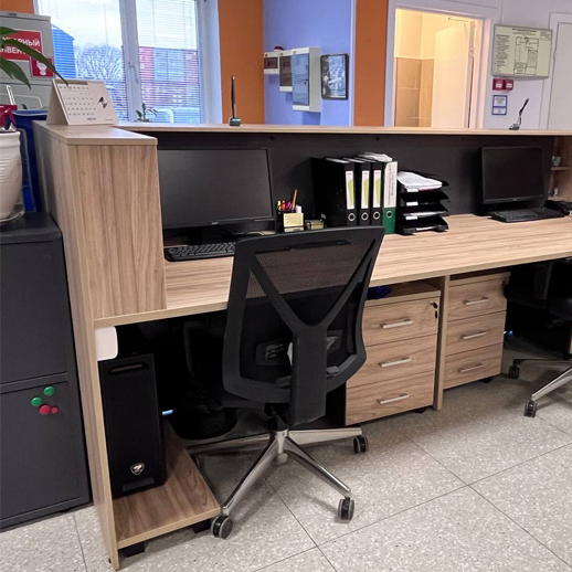 Оснащение офиса современной мебелью в едином стиле (шкафы, столы, тумбы, ресепшен)