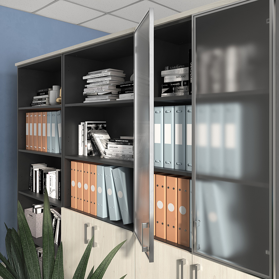 • двери со стеклом 4 мм в алюминиевой рамке оснащены специальными петлями Hettich для рамочного профиля, каждая дверь оснащена доводчиком