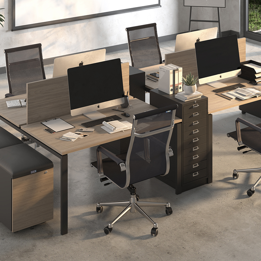 • Столы сочетаются по материалам изготовления и дизайну с тумбами офисными серии NP