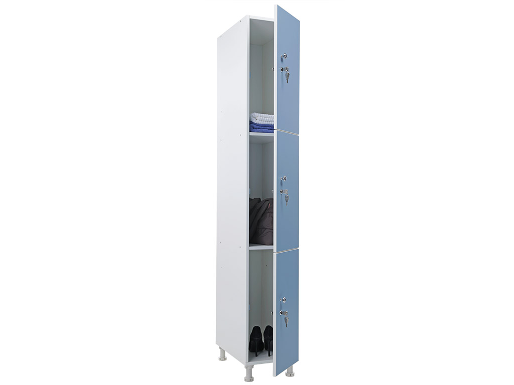 Поставка в гардеробные помещения шкафов для раздевалок из ЛДСП с электронными замками ПРАКТИК WL 11-40 EL голубой/белый в кол-ве 363 шт.